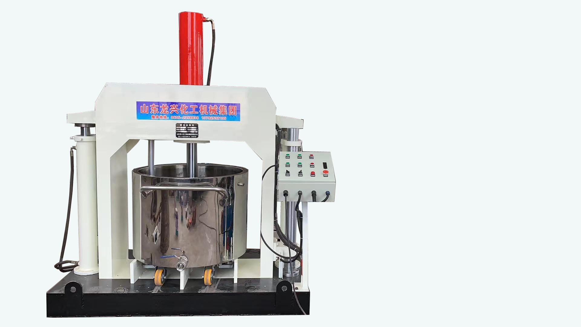 液壓出料機與本廠生產的雙行星動力混合機、雙行星混合機、多功能混合機相配套,從而實現高粘度物料的擠出、人工灌裝、輸送。它能將相應容積攪拌桶內的油墨、膠粘劑、硅膠等高粘度物料通過壓料盤施壓使物料盤上出料口或攪拌桶下出料口出料,從而實現對物料各種形式的包裝。